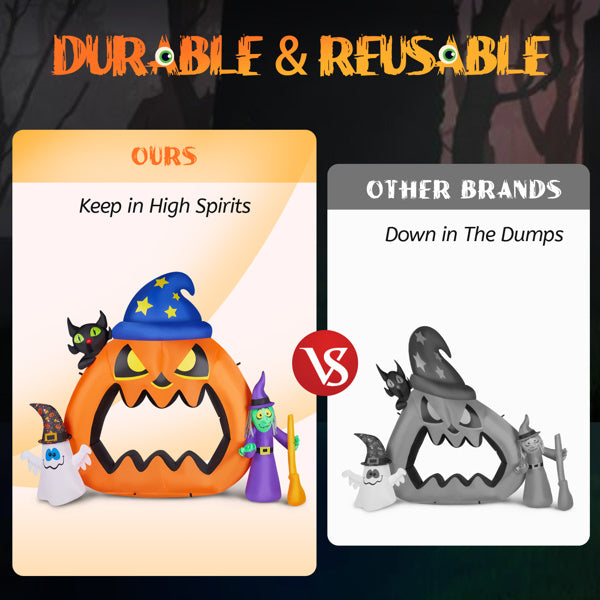 Halloween is here, give your home a perfect Halloween atmosphere! Recommend this Inflatable Halloween Decoration to you here. Made of high quality waterproof polyester, not easy to tear. The excellent stitching keeps it always inflated, and it will not leak even if it is inflated for a long time. Built-in LED lights, better viewing at night. Can be placed in the yard, garden, lawn, patio, porch, home and more. And it can be used repeatedly, so what are you waiting for? Place an order now!